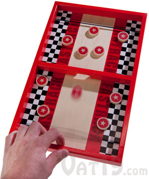 Fastrack is a frenetic desktop disc flinging game. Your goal is to shoot your five wooden discs into your opponent's half of the court. The catch? The opening is only a quarter-inch wider than your ammo.