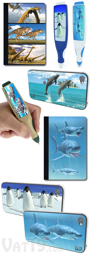 With Moovie Lenticular Image products, your fiddling around just got a heck of a lot more interesting. Boring meeting? Rotate your cell phone back and forth to view a pair of sharks on the attack. Terrible lecturer? Twiddle your pen to control a school of leaping dolphins.