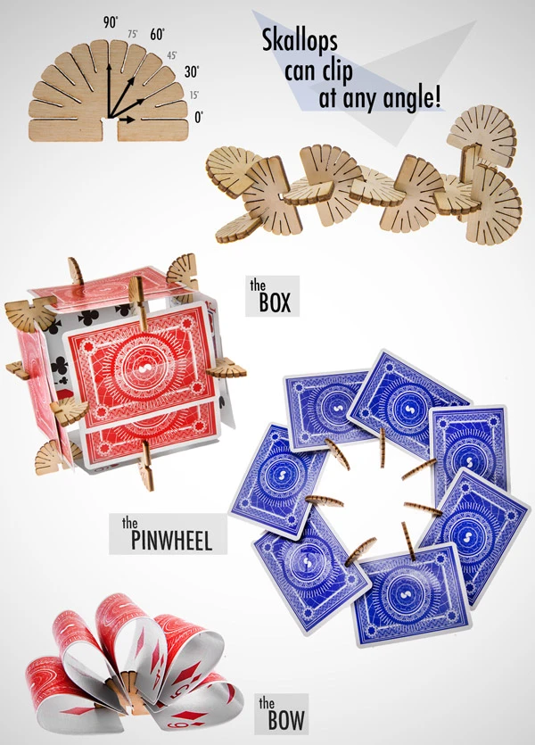 Skallops are semi-circular discs that allow you to create amazing structures from regular playing cards.