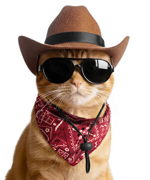 - Includes cowboy hat, aviator sunglasses, and bandana