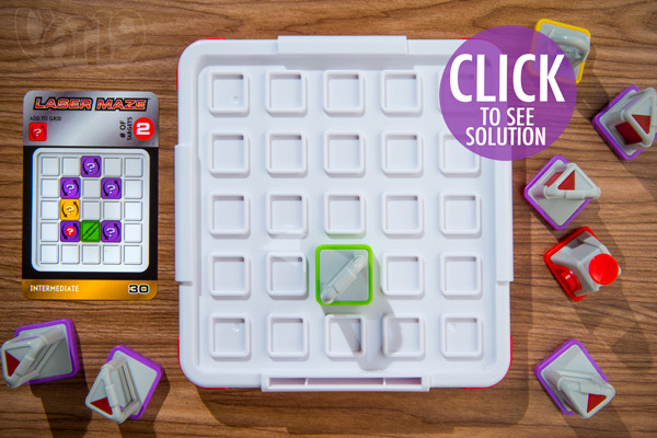 Try solving the Laser Maze challenge pictured above. You must determine where to place the laser so that