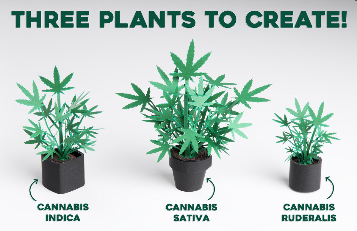 - 3 plant styles: Ruderalis, Sativa, and Indica