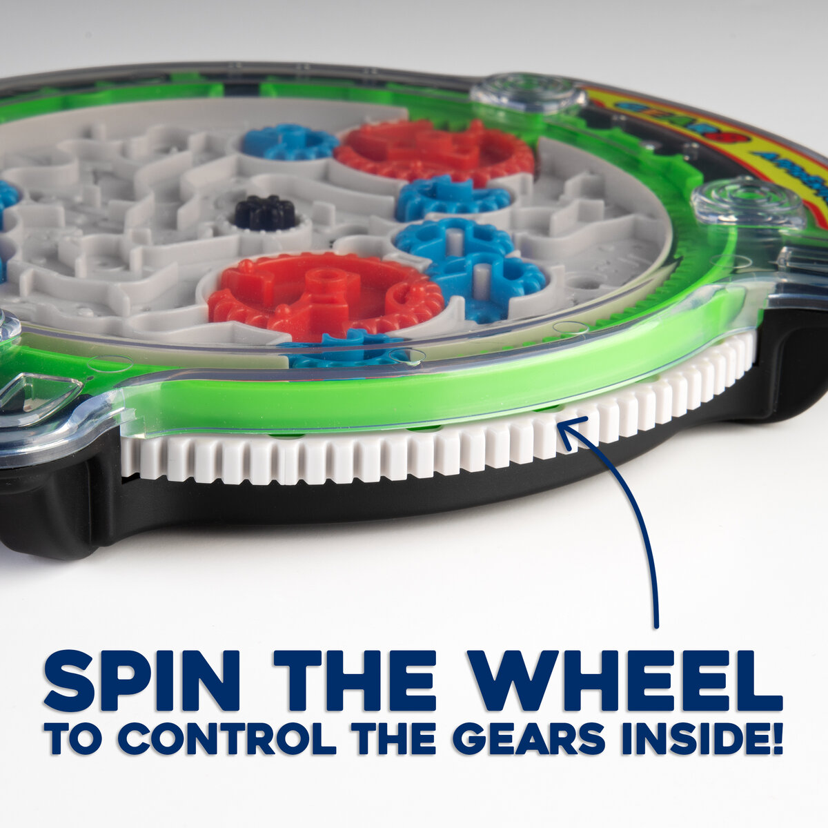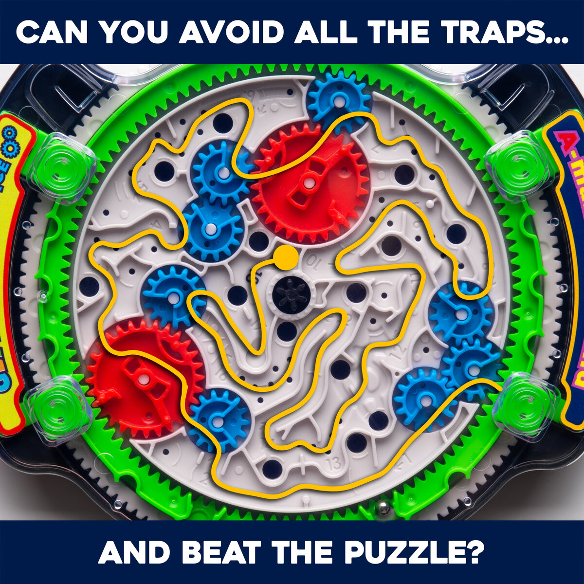 - Rotate the gear on the outside to adjust the maze